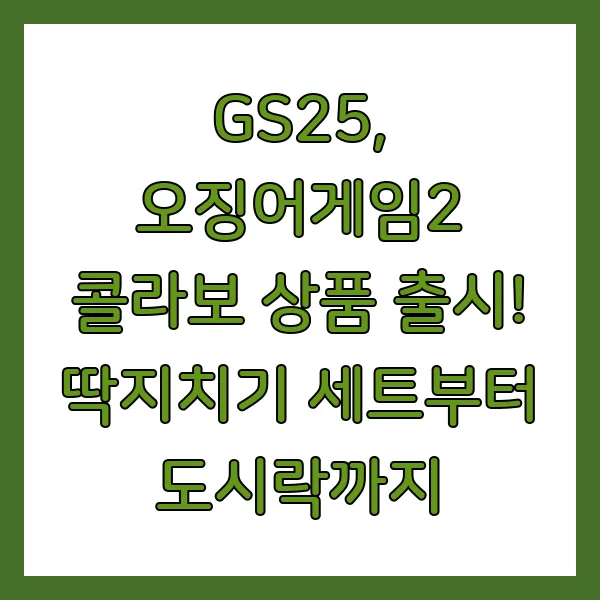 글로벌 센세이션을 일으킨 넷플릭스 오리지널 시리즈 '오징어 게임' 시즌2가 드디어 돌아왔습니다! GS25가 발 빠르게 협업 상품을 출시하며 팬들의 기대감을 증폭시키고 있는데요. 드라마의 핵심 게임 요소를 오프라인으로 구현한 딱지치기 세트부터 등장인물들의 추억을 담은 도시락까지, 다채로운 상품 구성으로 소비자들을 사로잡을 예정입니다. 과연 이번 콜라보는 어떤 놀라움을 선사할까요? 지금 바로 확인해보세요!