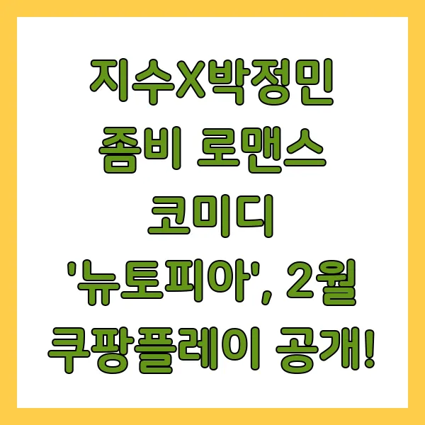 블랙핑크 지수와 박정민의 만남으로 화제를 모으고 있는 쿠팡플레이 오리지널 시리즈 '뉴토피아'가 드디어 2월에 공개됩니다! K-좀비 열풍을 이어갈 로맨틱 코미디 '뉴토피아'는 좀비 바이러스로 황폐해진 세상에서 피어나는 사랑 이야기를 그린 작품입니다. 독특한 장르 조합과 탄탄한 제작진, 그리고 화려한 캐스팅으로 벌써부터 기대감을 증폭시키고 있습니다. 지수, 박정민, 윤성현 감독, 쿠팡플레이, 좀비, 로맨틱 코미디 등의 키워드를 중심으로 '뉴토피아'에 대한 모든 것을 파헤쳐 보겠습니다.