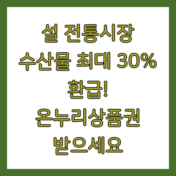 설 명절, 차례상 준비 부담 덜고 싶으신가요? 전통시장에서 제수용품 장만하고 온누리상품권 환급 혜택까지 챙겨보세요! 설맞이 전통시장 수산물 환급행사, 지금 바로 확인하세요! 온누리상품권, 전통시장, 설날, 수산물, 환급 등의 키워드를 사용하여 최대 30% 환급 , 1인당 최대 2만원 혜택 등의 정보를 제공합니다.