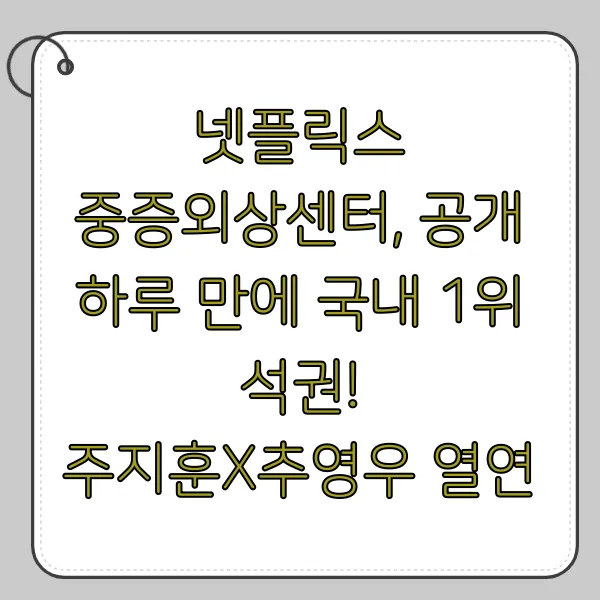 넷플릭스 오리지널 시리즈 '중증외상센터'가 공개 하루 만에 국내 1위를 차지하며 2025년 넷플릭스 대작의 포문을 열었습니다! 주지훈, 추영우 두 배우의 환상적인 케미와 긴박한 의학 드라마의 매력이 시청자들을 사로잡고 있는데요, '중증외상센터'의 흥행 돌풍, 과연 어떤 비밀이 숨겨져 있을까요? 지금 바로 분석 들어갑니다!